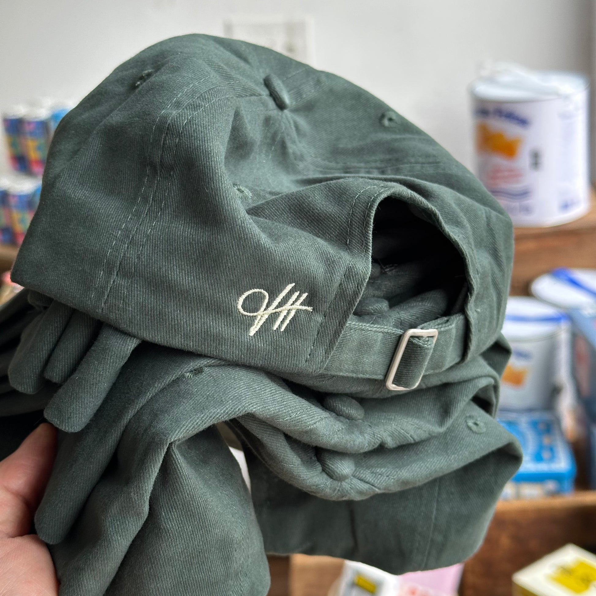 Brushed twill low-profile cap in Hunter Green, with adjustable cloth strap.